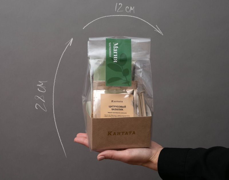 Сочный аромат, яркий вкус! В подарке – ягодный купаж зеленого чая «Все девушки любят малину» и «Огни ночного города» с ягодами клюквы, цедрой апельсина и лепестками календулы, а также пряный черный чай «Цитрусовый базилик». Эти напитки сделают любое чаепитие уютным и согревающим, а чтобы любимый чай надолго сохранил вкус и аромат, мы добавили в набор стильный зажим для пакетов с логотипом Кантаты.