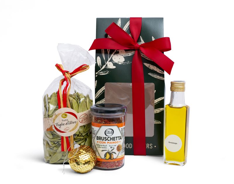 Новогоднее застолье запомнится невероятными вкусами блюд, если предложить гостям уникальную пасту в форме листочков оливы, дополнить ее брускеттой с манго и нежным оливковым маслом «Ночеллара».
