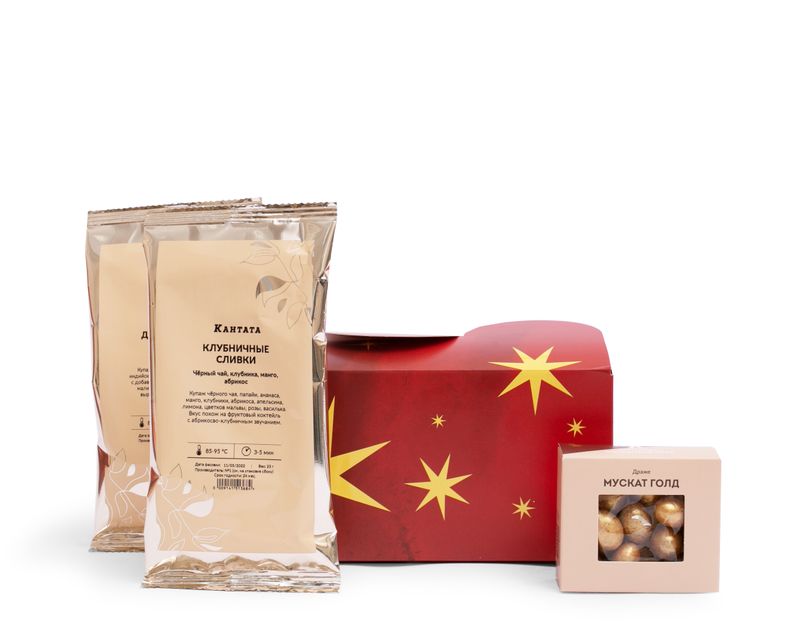 Подарите близкому уютное чаепитие! В этом подарке мы собрали два душистых чая — «Клубничные сливки» и «Дикие ягоды» с согревающим ароматом варенья, а к ним на десерт добавили золотистые драже «Мускат Голд» — точно мерцающие звёздочки!