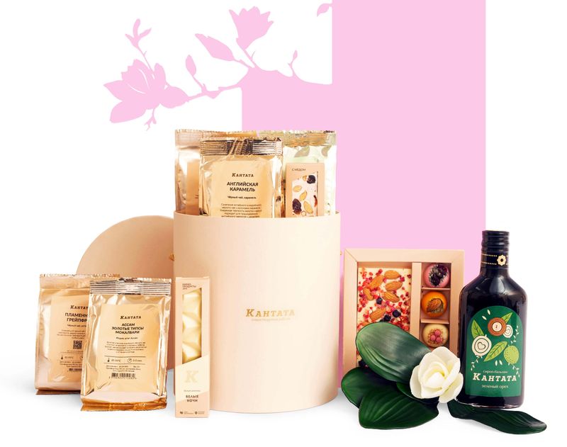 Лучший подарок для ценителя чая! В шляпной коробке цвета искрящегося шампанского найдется пять видов чая. Такой выбор точно порадует любителя как классики, так и интригующих десертных звучаний. К чаю в подарок мы положили нугу с вишней, набор конфет и тающую на языке плитку шоколада, а также сироп, который можно добавить в любимый напиток или выпечку.