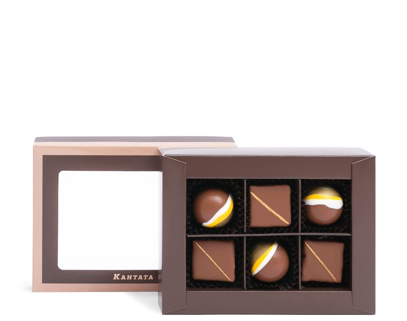 Дуэт конфет ручной работы, который великолепно дополнит чаепитие и добавит десертной ноты любимому кофе — знаменитая «Соленая карамель» с текучей контрастной начинкой и бархатная «Аврора» с миндалем и фисташкой.