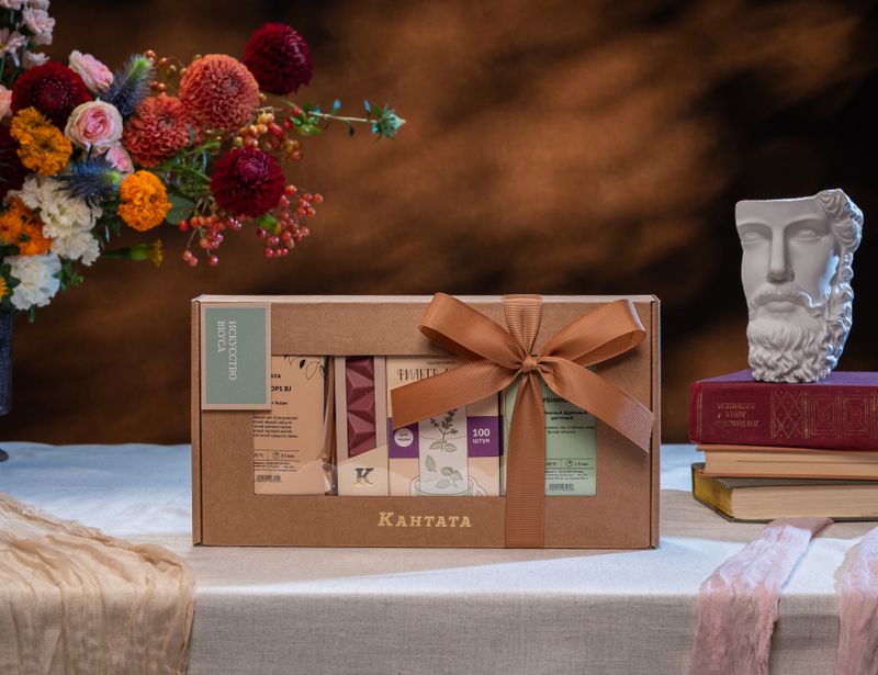 Набор «Чайная церемония» — это компактный и лаконичный подарок с характером: здесь всё, чтобы устроить уютный перерыв — будь то дома, на работе или в дороге. Ассорти чая, фильтр-пакеты и два шокобара создают атмосферу неспешного наслаждения и деликатного внимания к деталям.