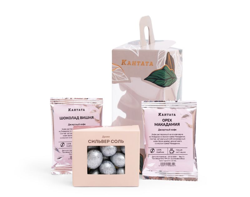 Подарите мгновенья отдыха с двумя согревающими сортами кофе и аппетитными драже ручной работы.