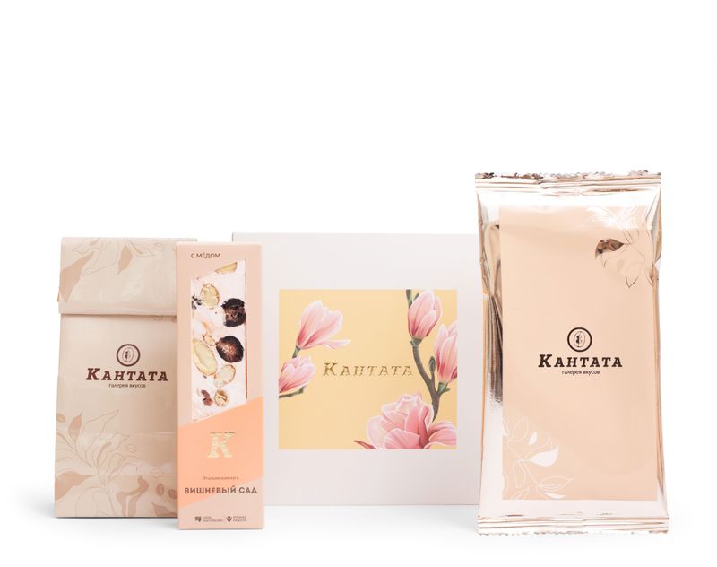 Тематический подарок для ценителя вкуса: внутри — душистый чайный купаж, бодрящий зерновой кофе и аппетитный десерт ручной работы.