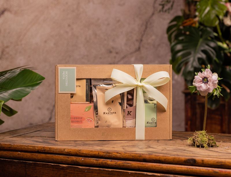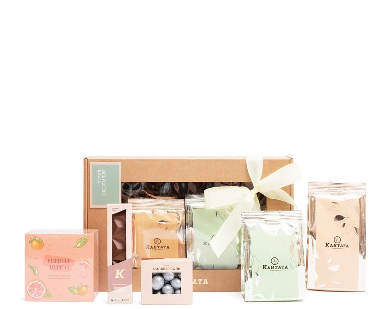 Чудесный подарок для того, кто больше всего любит чай! Внутри — яркий купаж черного чая «Ягодная пастила» и успокаивающий «Сладкий вечер», мечтательный купаж зеленого чая «Маленький принц» и классика — «Белый пух» с приятными травяными нотами. Также в набор мы добавили «Пламенный грейпфрут» — купаж черного чая с цитрусовым ароматом в удобном формате пирамидок. Изысканные сладко-соленые драже и плитка молочного шоколада сделают чаепитие еще разнообразней.