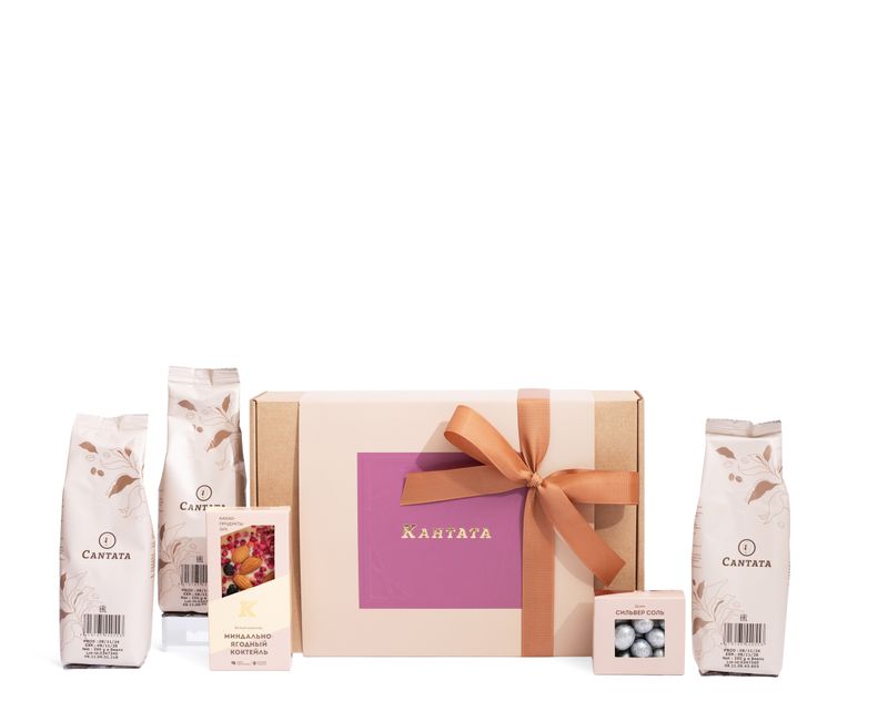 Набор, в котором соединились бодрящий кофе в зёрнах, мягкие десерты и авторские сладости. Разнообразие сортов кофе и миндально-ягодный шоколад — гастрономический акцент в каждой детали. Подарок для настоящего кофейного гурмана.