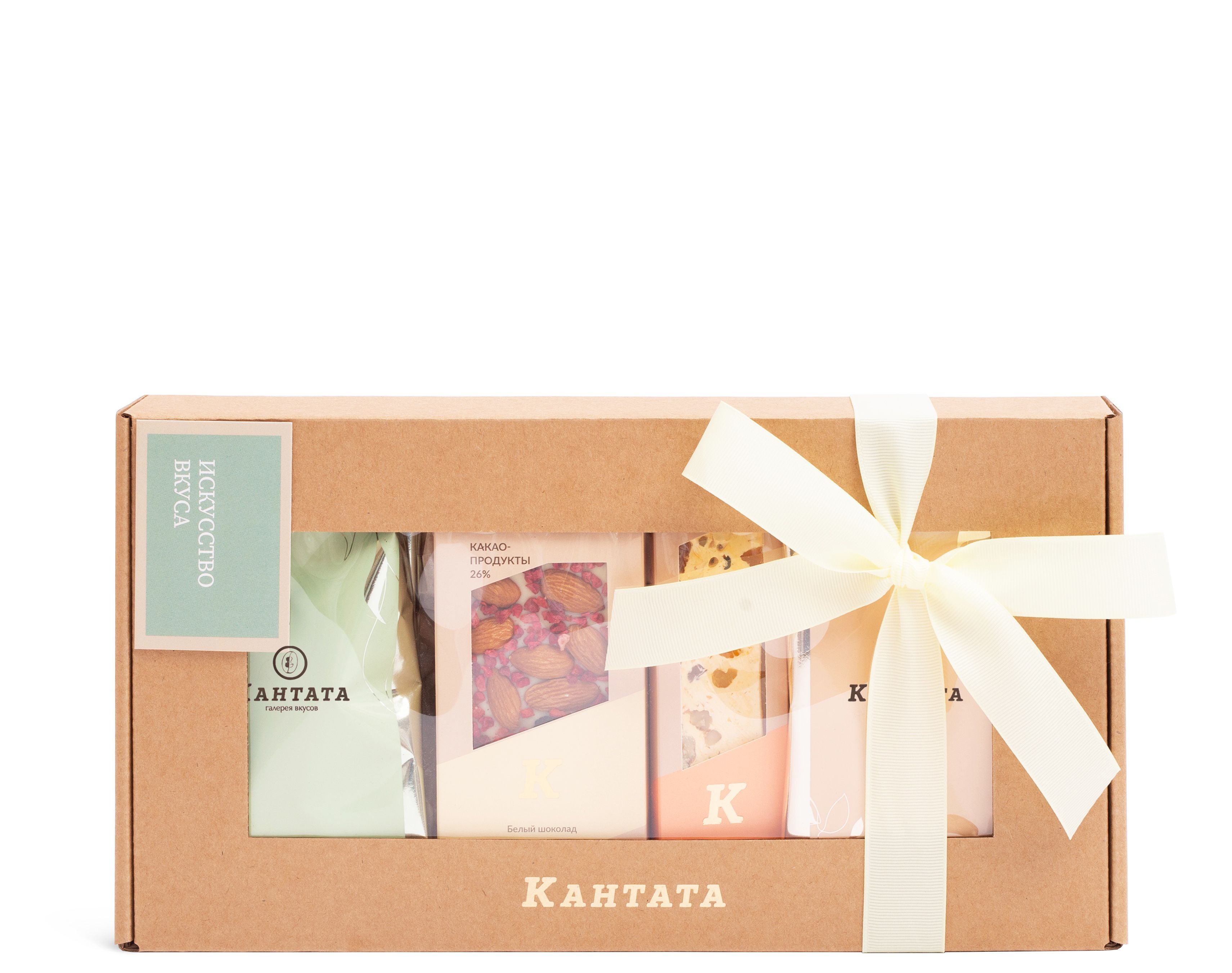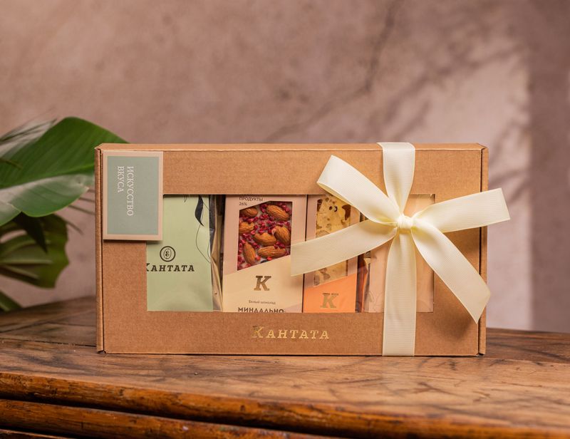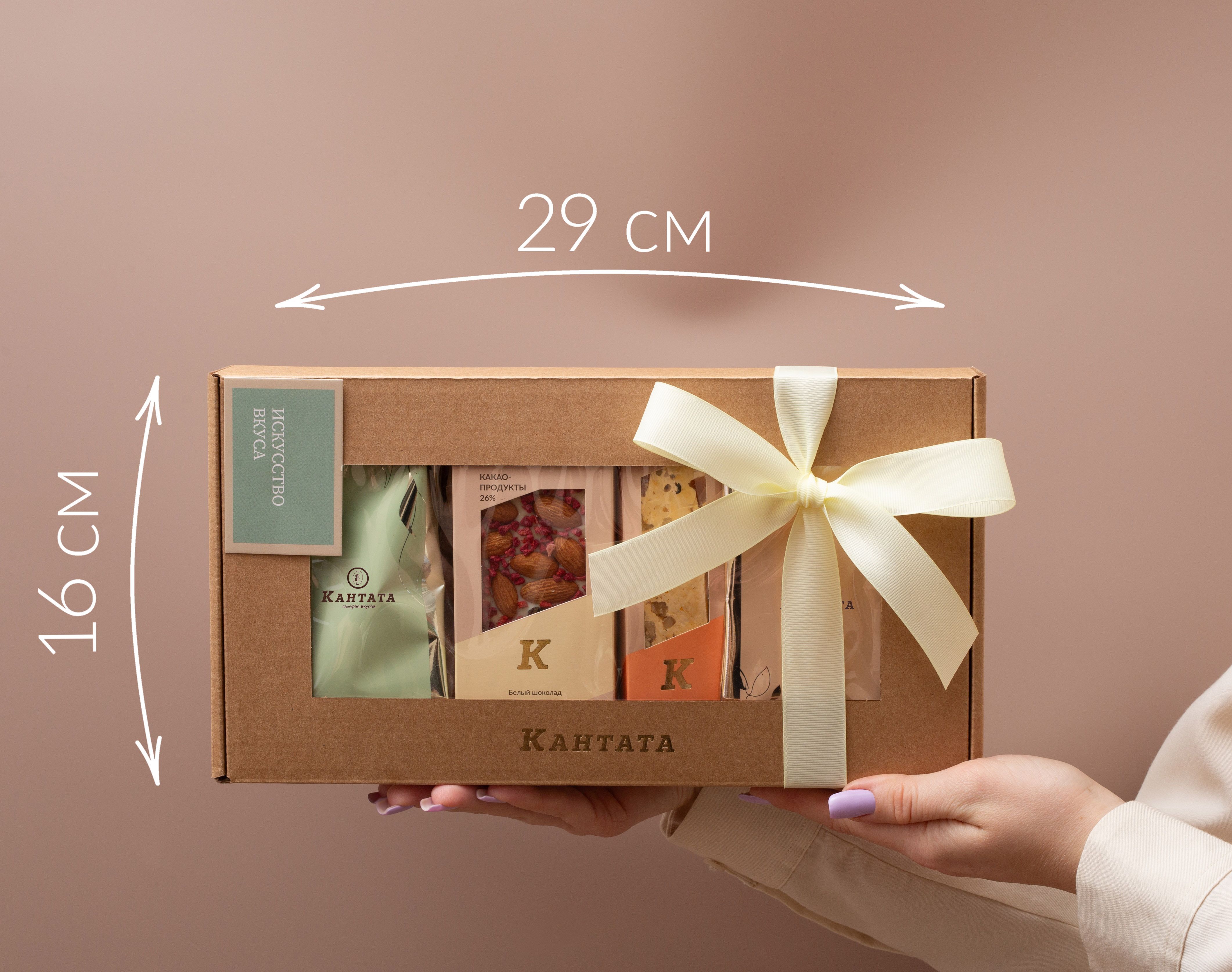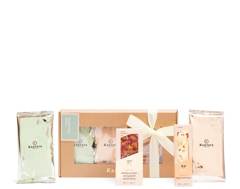 Подарите вкусное и уютное чаепитие! Внутри набора — черный чай «Тропическое соло» с ароматом экзотических фруктов и черный чай «Английская карамель», который станет прекрасным поводом для чаепития. Классический чай «Зеленая улитка» поутру вдохновит свежим цветочным ароматом, а авторский купаж «Магия трав» подарит гармонию в завершении дня. Плитка белого шоколада с орехами и ягодами вкусно подчеркнет грани согревающих напитков.