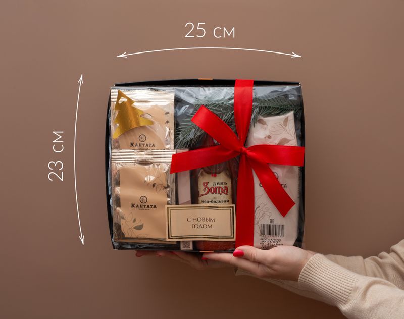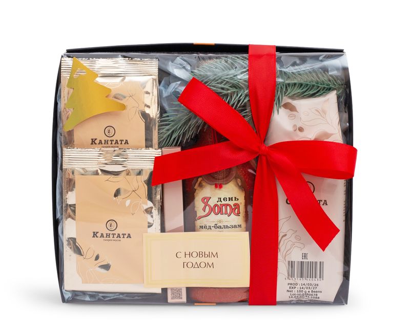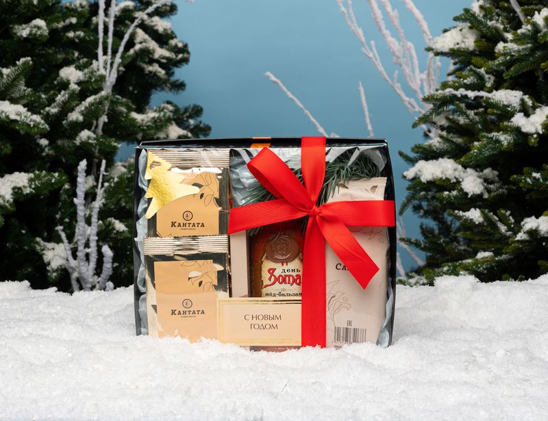 Тёплый и уютный подарок для зимних вечеров. В элегантной коробке собраны сладости и напитки с мягкими сливочными акцентами: ароматный сироп, шоколад, кофе и чаи с нежными фруктовыми оттенками. Веточка ели добавляет композиции праздничное настроение, а каждая деталь делает этот набор символом уюта и заботы.