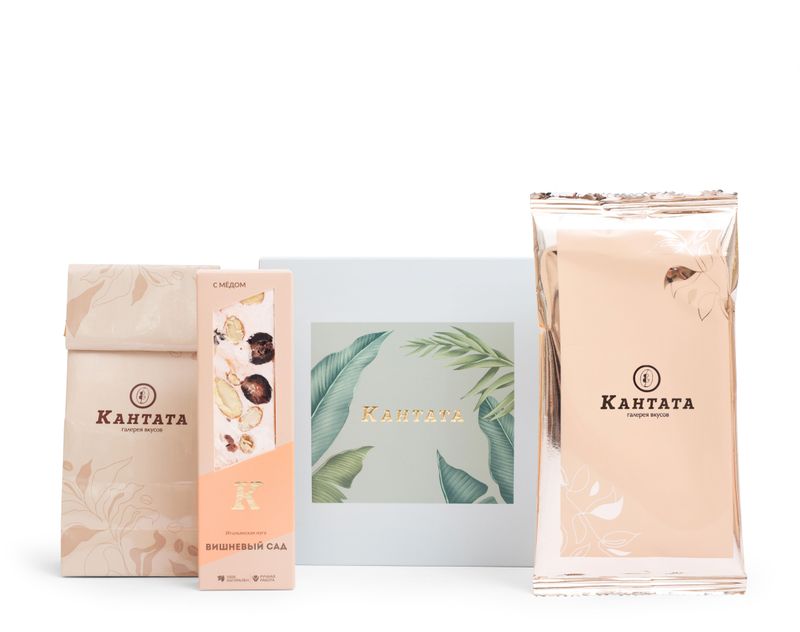 Тематический подарок для ценителя вкуса: внутри — душистый чайный купаж, бодрящий зерновой кофе и аппетитный десерт ручной работы.