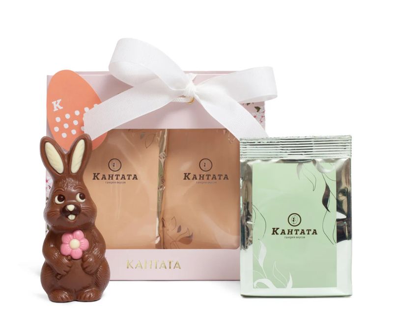 Компактный подарочный набор с пасхальным настроением и выразительным вкусовым акцентом. Шоколадная фигурка задает эмоцию праздника, а сочетание классического черного чая, ореховых и десертных нот создает насыщенный, сбалансированный вкус. Формат сумки с окном делает композицию визуально легкой и аккуратной — такой подарок удобно дарить как знак внимания, небольшое поздравление или теплый весенний комплимент.