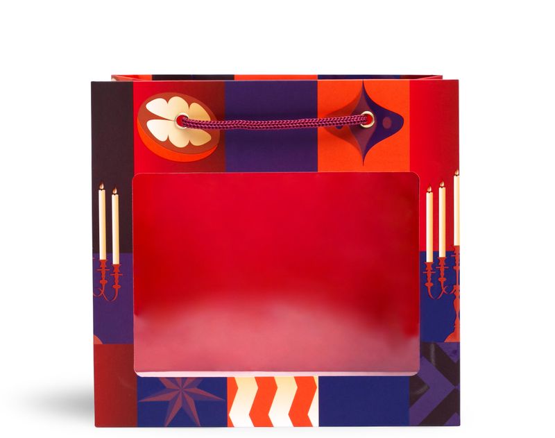 Стильная сумка с окошком для ваших подарков. Размер — 18x17x9см.