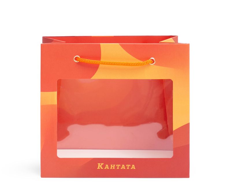 Стильная сумка с окошком для ваших подарков. Размер — 18x17x9см.