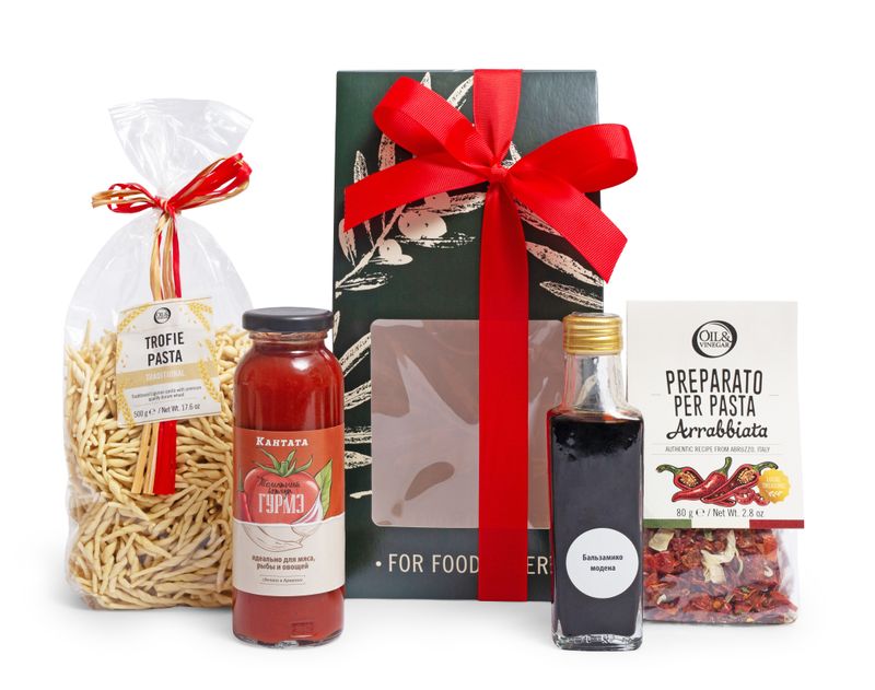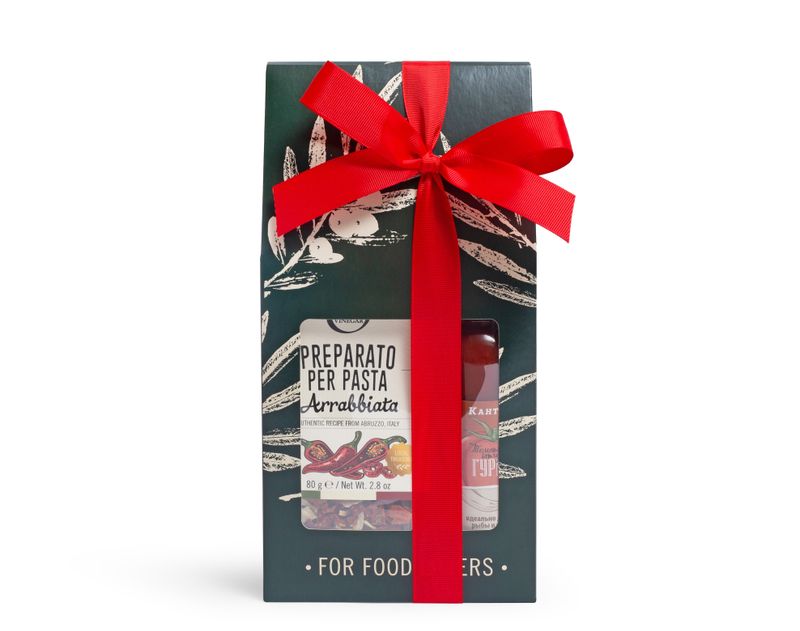 Подарок для тех, кто любит вдохновляться ароматами кухни и создавать гастрономические шедевры. В наборе сочетаются пикантные, яркие и пряные акценты, которые пробуждают аппетит и фантазию. Острые и насыщенные соусы, ароматная паста и вкусные закуски добавят тепла и эмоций любому блюду. Такой подарок дарит главное: уют, щедрость и вкус настоящего праздника. Попробуйте!