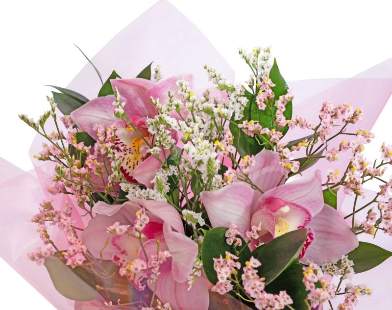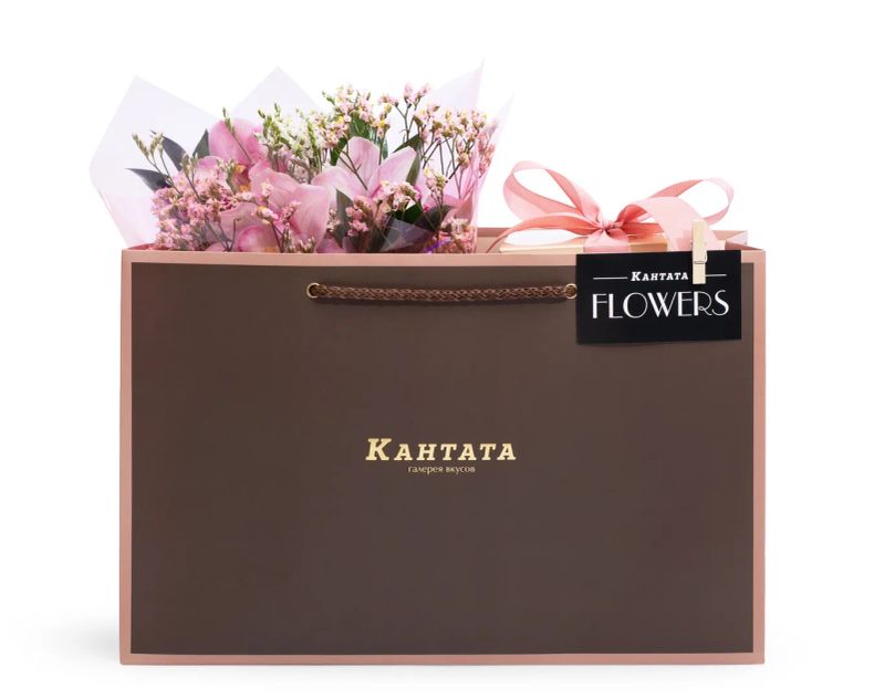 Эффектная и насыщенная композиция с ярким визуальным и вкусовым акцентом. Зеленый чай с освежающим цитрусовым ароматом становится легкой основой, а сладкие и чайные дополнения формируют ощущение праздника и динамики. Цветочная часть с орхидеями, лимониумом и сочной зеленью создает ощущение движения и радости, словно вспышка цвета и эмоций.