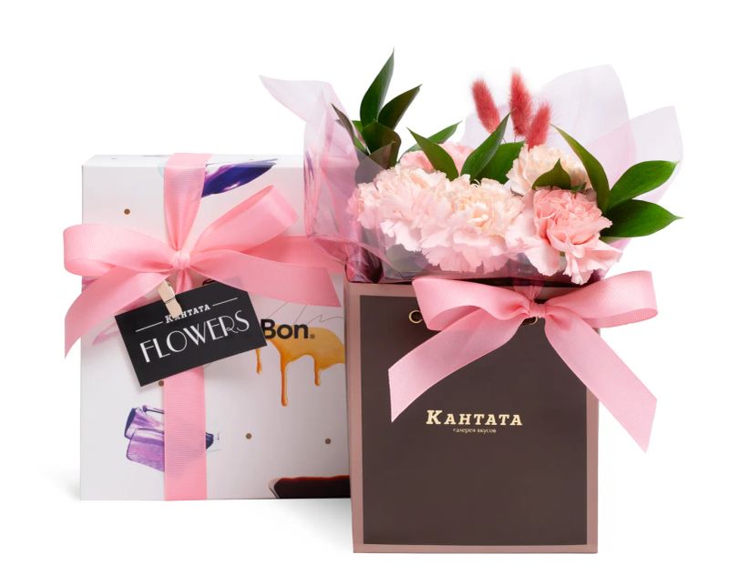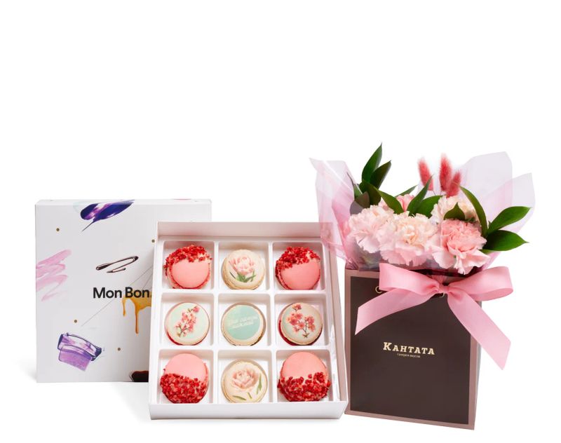 Элегантный набор, в котором девять авторских монбонов с выразительными начинками дополнены нежной цветочной композицией в фирменной упаковке. Красивый и продуманный способ подчеркнуть важный момент — будь то признание, благодарность или особенный день.