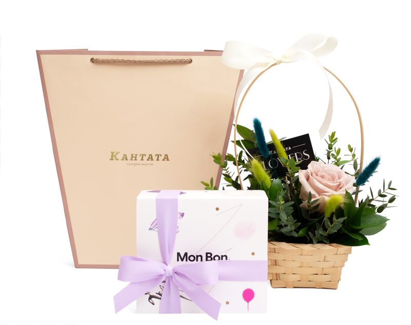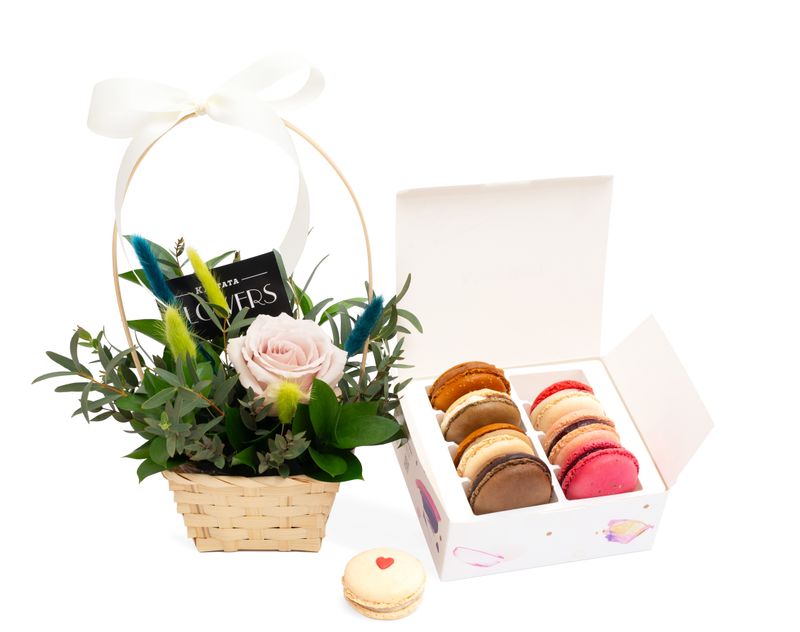 Пусть каждый момент будет наполнен чуткой романтикой вместе с композицией из живых цветов и макаронов MonBon, которые словно созданы друг для друга!