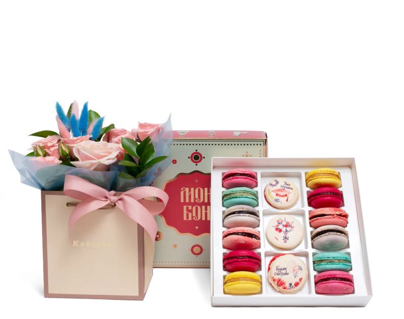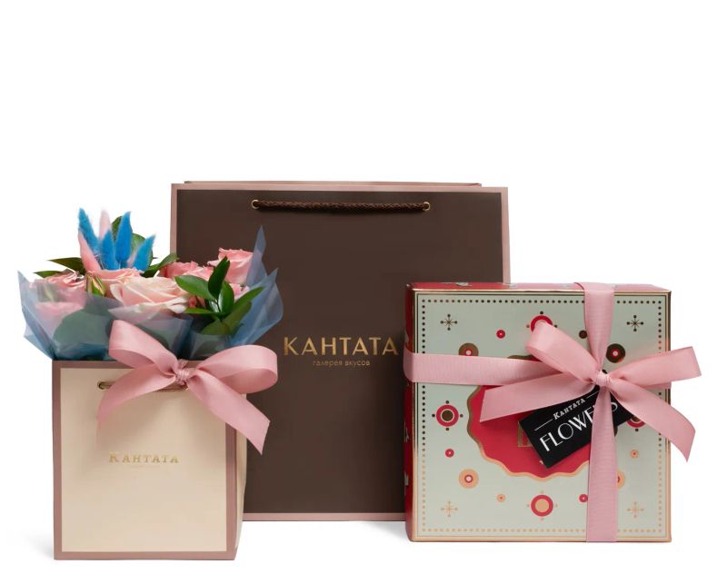 Подарочный набор с акцентом на масштаб и разнообразие. Внутри — коллекция десертов с разными вкусами. Цветочная композиция и стильное оформление добавляют подарку выразительности и делают его заметным. Подойдет для важного события, когда хочется подарить что-то по-настоящему эффектное и запоминающееся.
