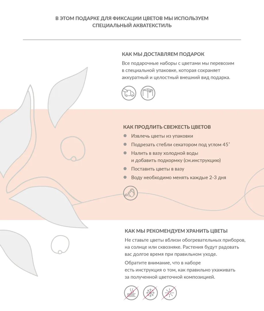 Доставка осуществляется только собственными курьерами, чтобы сохранить свежесть и безупречное качество продукции.