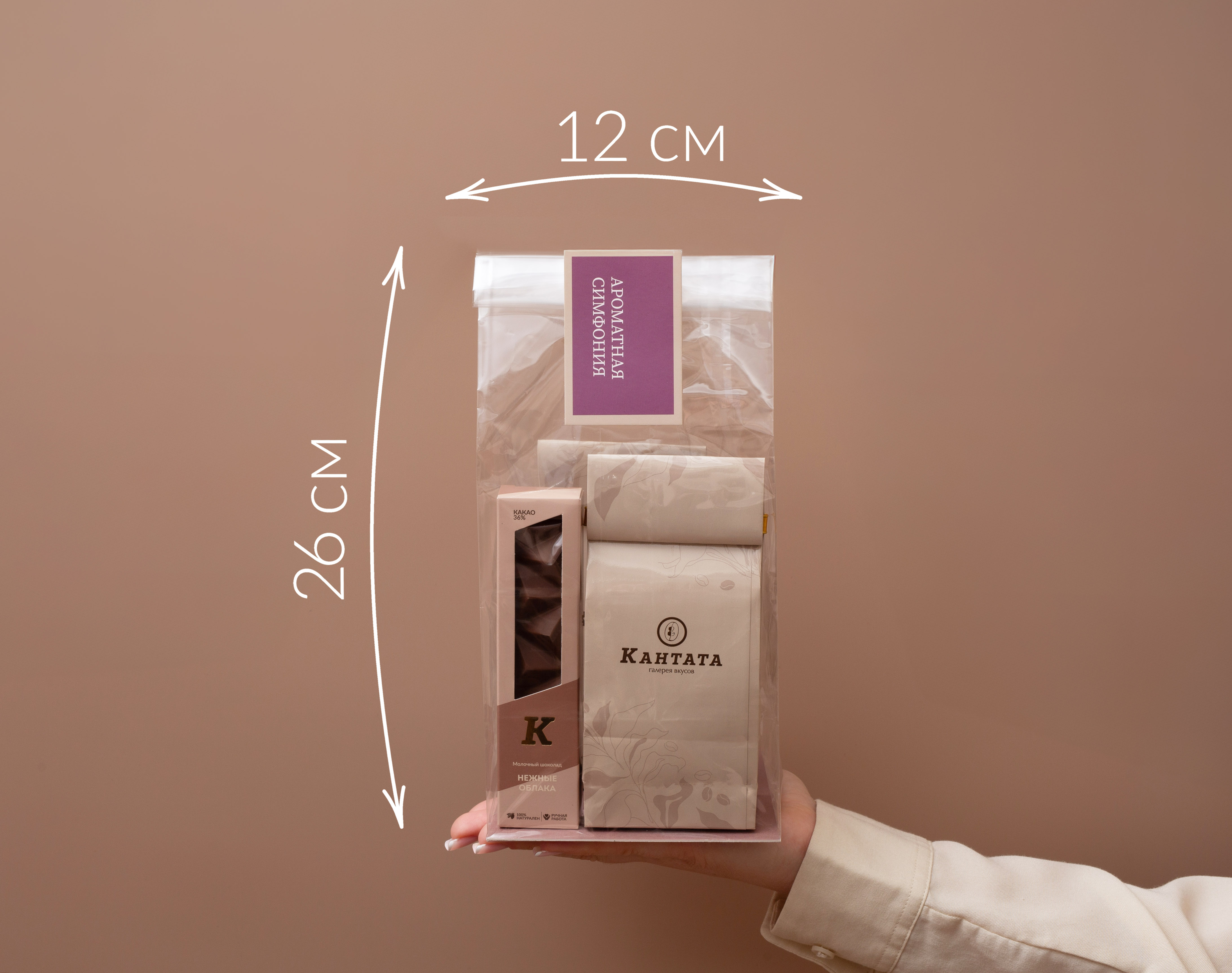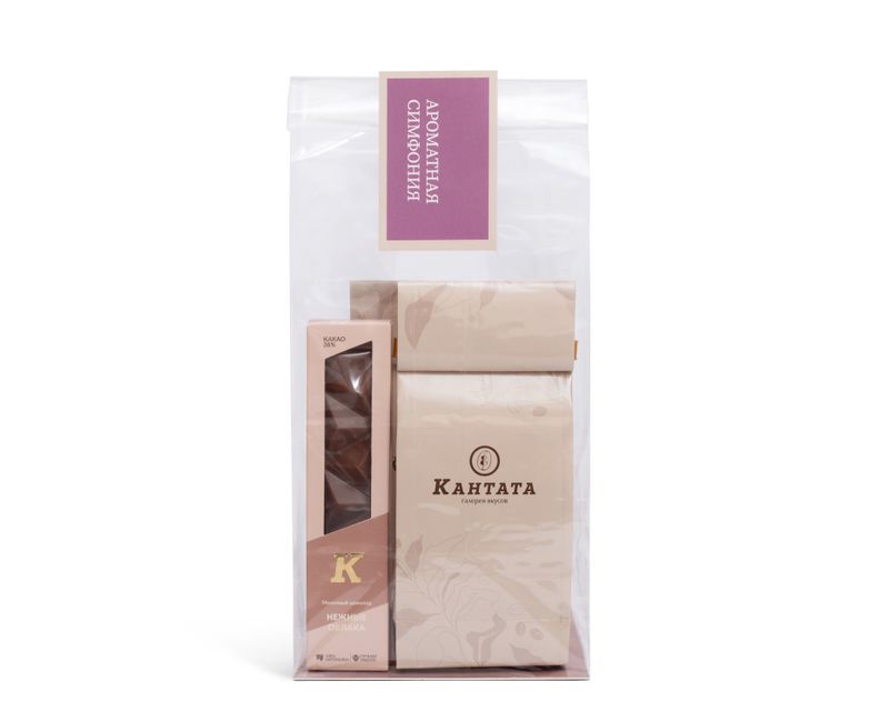 Выразительный подарок, где всё построено на гармонии вкуса и формы. Прозрачный пакет открывает взгляд на лаконичное сочетание кофе с мягкими десертными нотами малины и ореха. Шоколад завершает композицию, добавляя ей глубины и тепла. Это тот случай, когда простота становится признаком вкуса, а маленькая деталь способна передать внимание, заботу и настроение праздника.