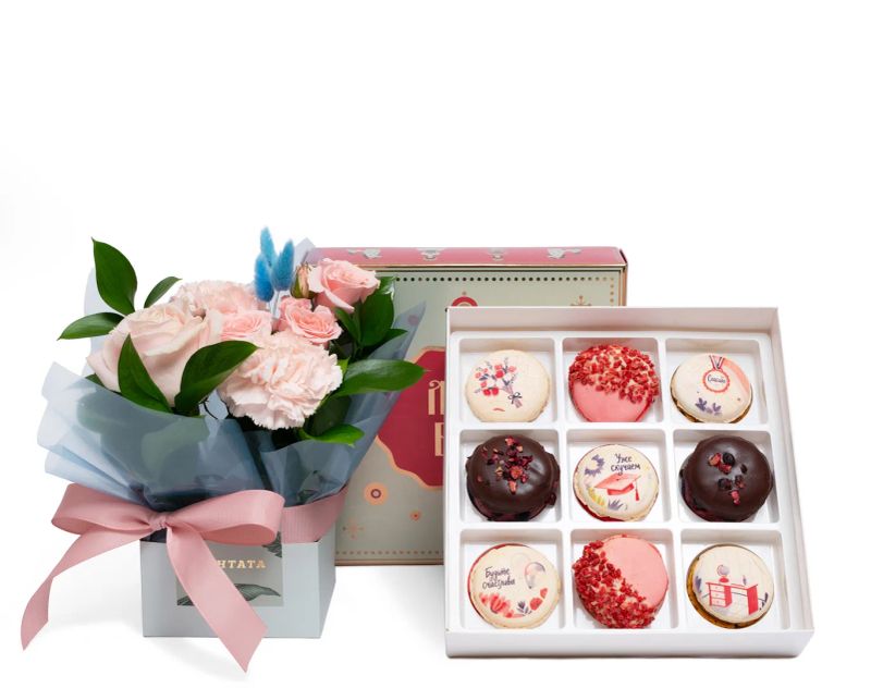 Подарок, который включает в себя все самое заметное: яркие макароны и ваубоны с разными вкусами — от сливочно-ягодных до более насыщенных и контрастных. Композиция из живых цветов делает набор ярким и эффектным и не требует дополнений. Подойдет для момента, когда хочется удивить и оставить после себя сильное впечатление.