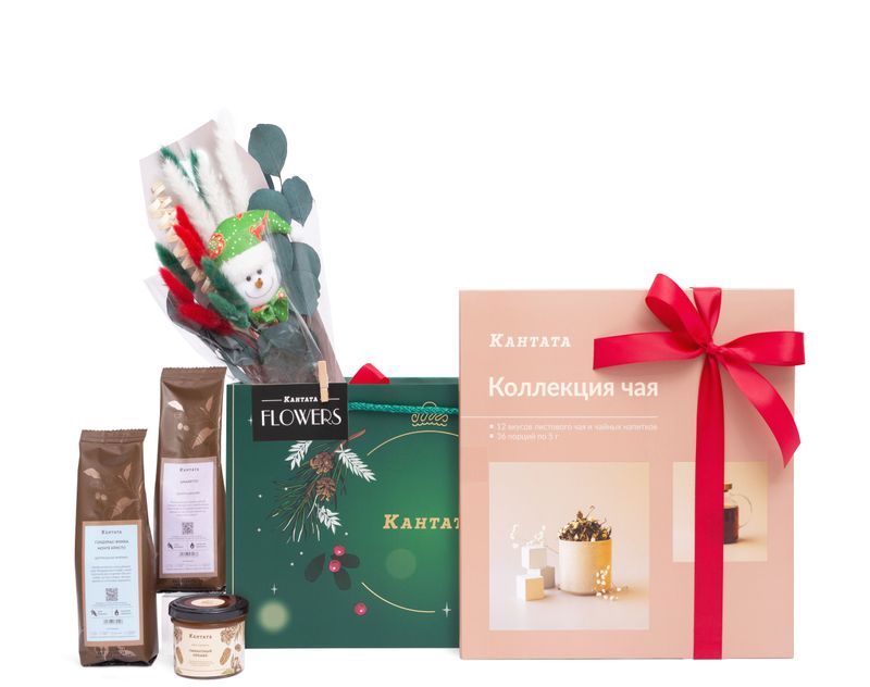 Волшебный подарок, полный вкуса! Внутри — великолепный набор напитков: 12 топ-сортов чая, а также два сорта кофе — десертный «Амаретто» с благородной ликерной нотой и Гондурас Финка Монте Кристо с природным пряным оттенком. На десерт — тягучая крем-карамель с орехами, которая дополнит уютное новогоднее настроение.