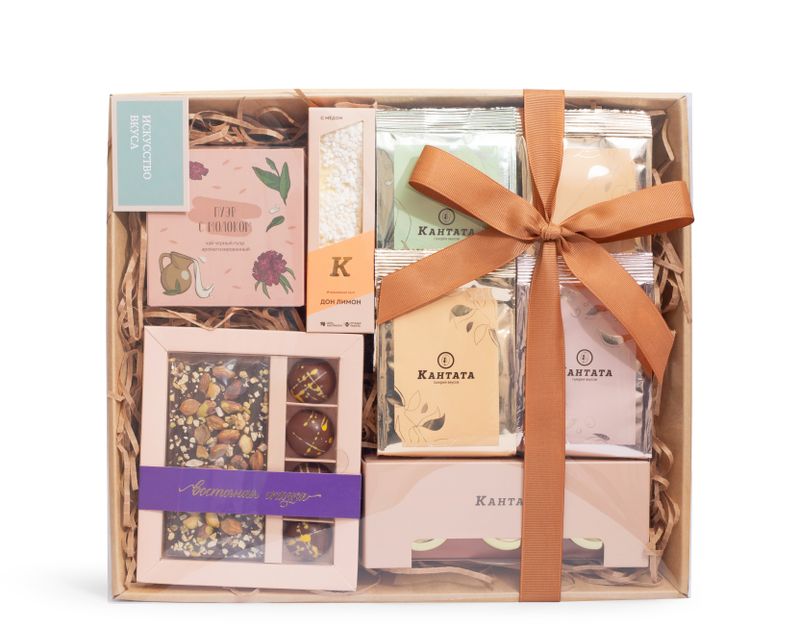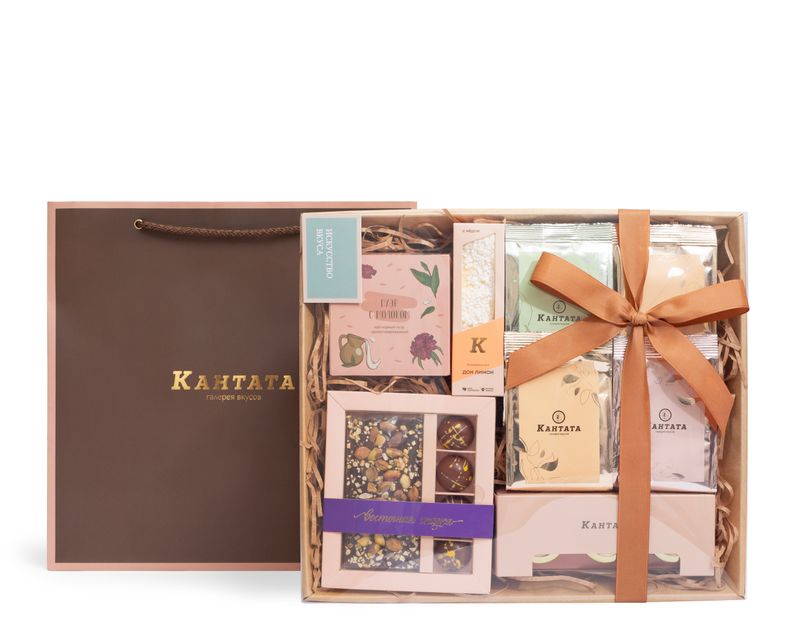 Праздник чая в полной оркестровке: наборы с яркими названиями, богатая коллекция сортов, сладкие дополнения и красивая подача. Сбалансированный и эффектный подарок — для семьи, офиса или тех, кто ценит вкус в деталях.