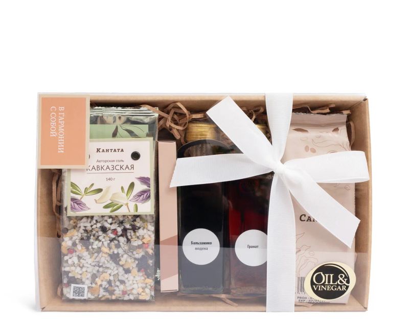 Смелый и атмосферный набор для тех, кто любит открывать новые вкусовые маршруты. Здесь объединены насыщенные кофейные ноты, гастрономические уксусы и соль, сладкие акценты и чай с выразительным характером. Композиция передает ощущение путешествия — от теплых, глубоких вкусов к свежим и ярким. Отличный выбор для ценителей нестандартных сочетаний и подарков с яркой индивидуальностью.