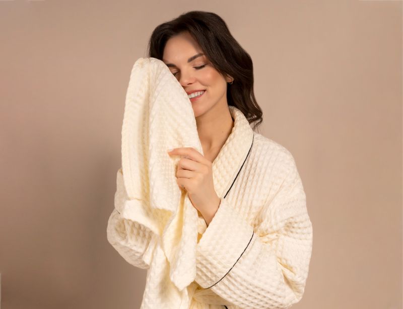 Банные полотенца от Кантаты изготовлены из крупной вафли с двойным умягчением. Такая процедура придаёт им особую мягкость. «Вафля» прекрасно впитывает и быстро сохнет за счет своей особой структуры полотна.