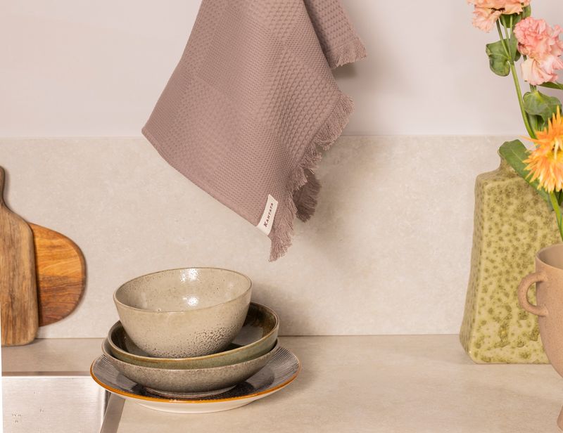 Полотенце будет как нельзя кстати на кухне – чтобы вытереть влагу. Также его можно использовать в ванной – мягкая «вафля» будет приятна к лицу и телу.