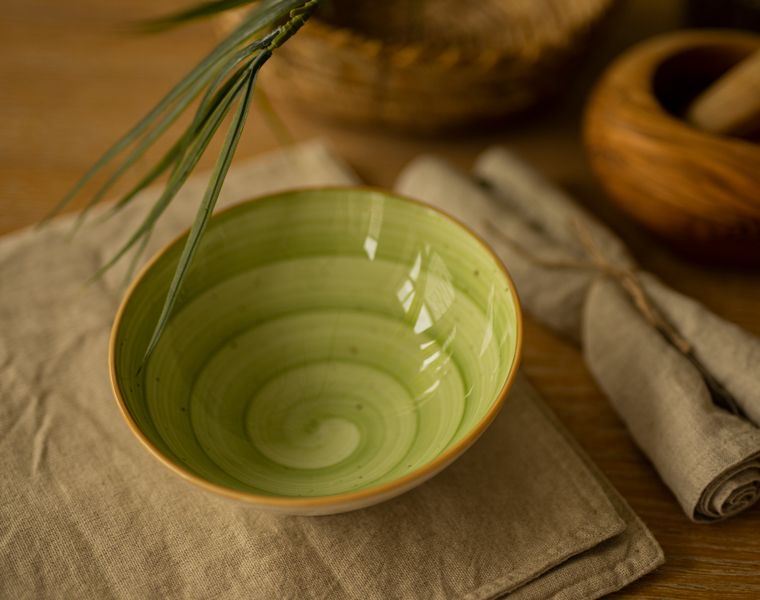 Эту серию посуды можно мыть в посудомоечной машине и использовать для приготовления блюд в печи. Яркий зеленый цвет подарит хорошее настроение и напомнит о лете.