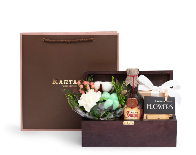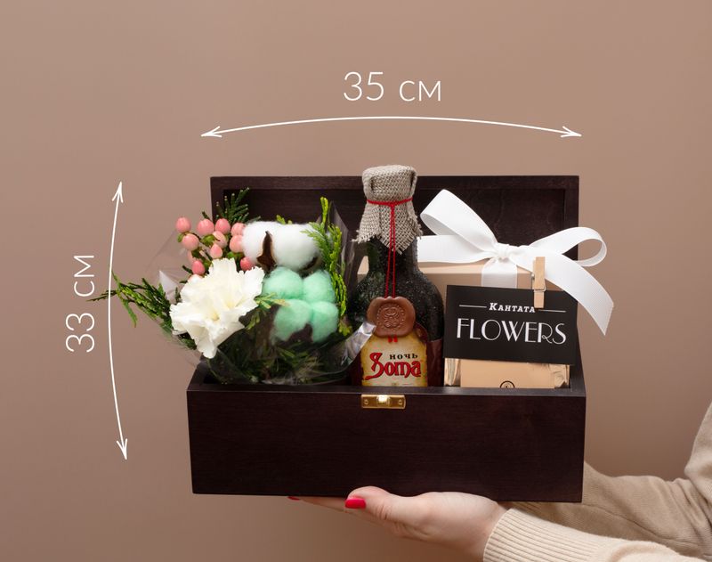 Эффектный и уютный подарок в классической шкатулке, сочетающий изысканные лакомства, чай и флористические элементы. Продуманное оформление создает атмосферу уюта и тепла — идеальный выбор для долгих зимних вечеров.