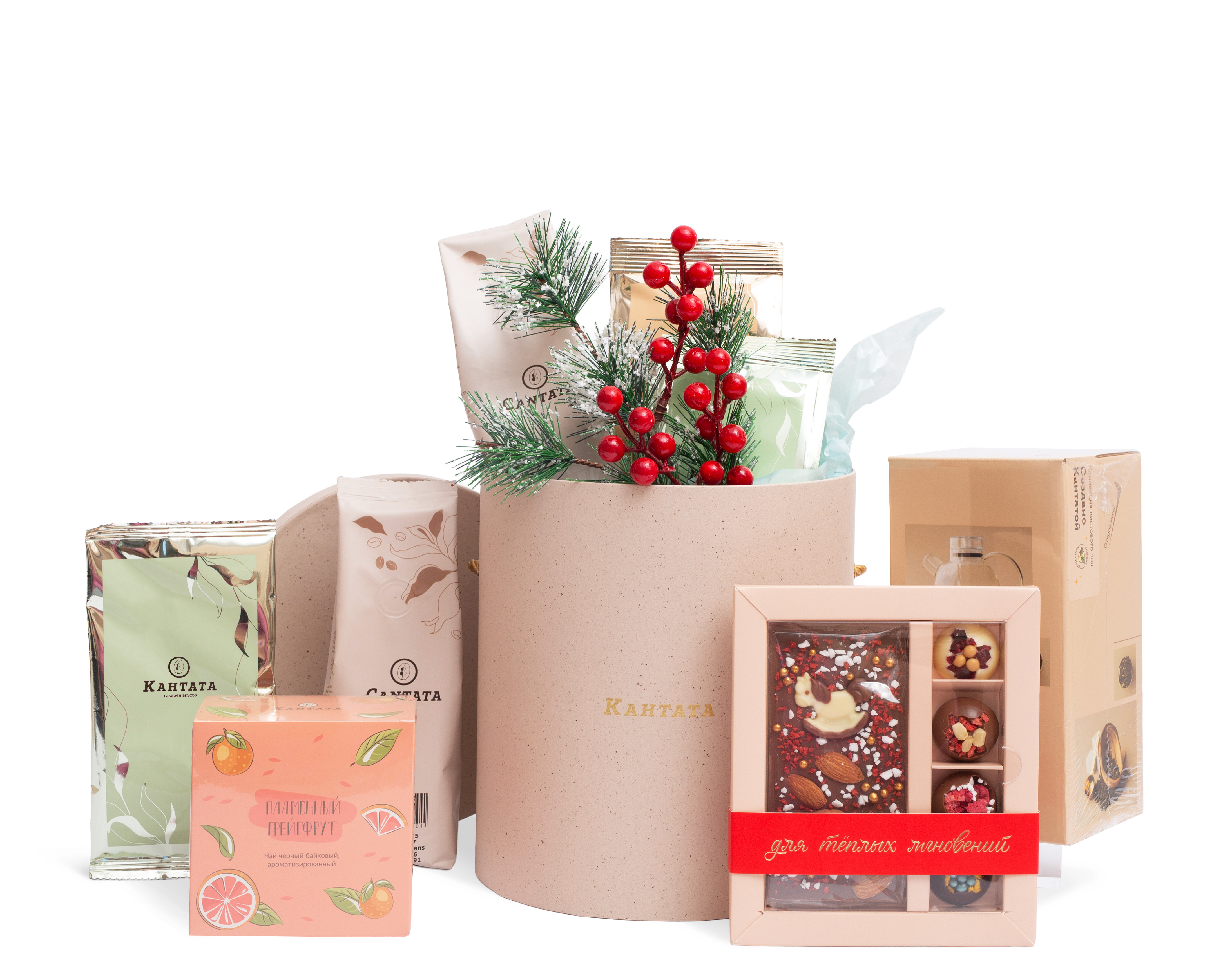 Роскошная шляпная коробка символизирует изобилие, богатство и удачу! Этот набор создан для тех, кто любит зимние вечера с чашкой ароматного чая, а просыпается под утонченные вкусы бодрящего кофе. Праздничное оформление, стильный дизайн и разнообразие внутри — то, что делает этот подарок желанным.