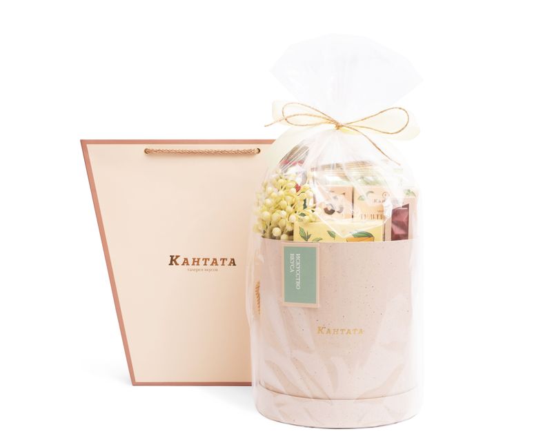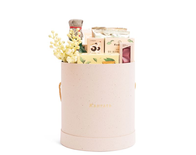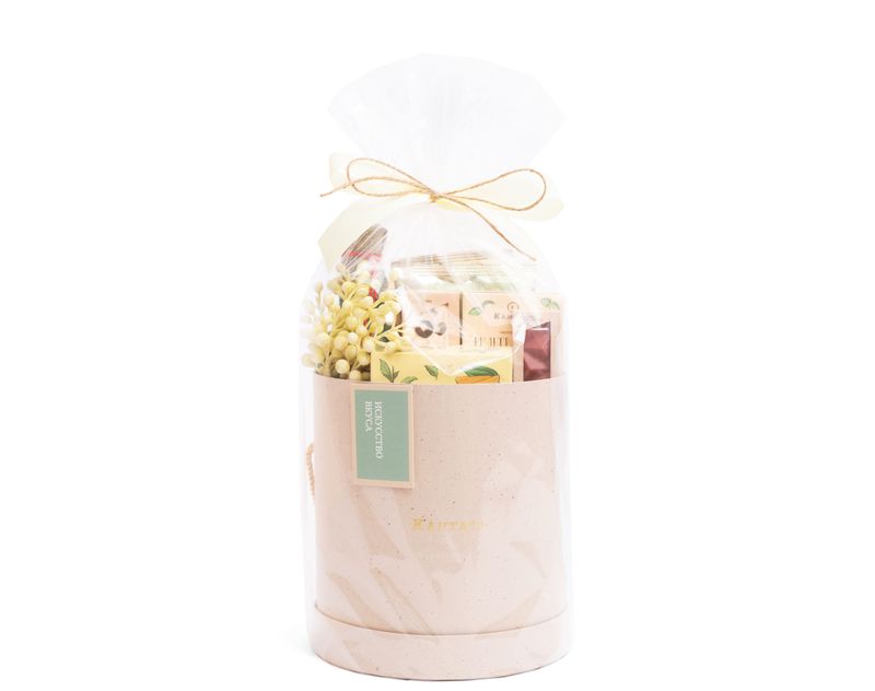 Изящная шляпная коробка, которая приятно удивит не только внешним видом, но и наполнением! Внутри — коллекция душистого чая, аппетитные десерты ручной работы и удобные аксессуары для заваривания, чтобы каждое чаепитие было комфортным.