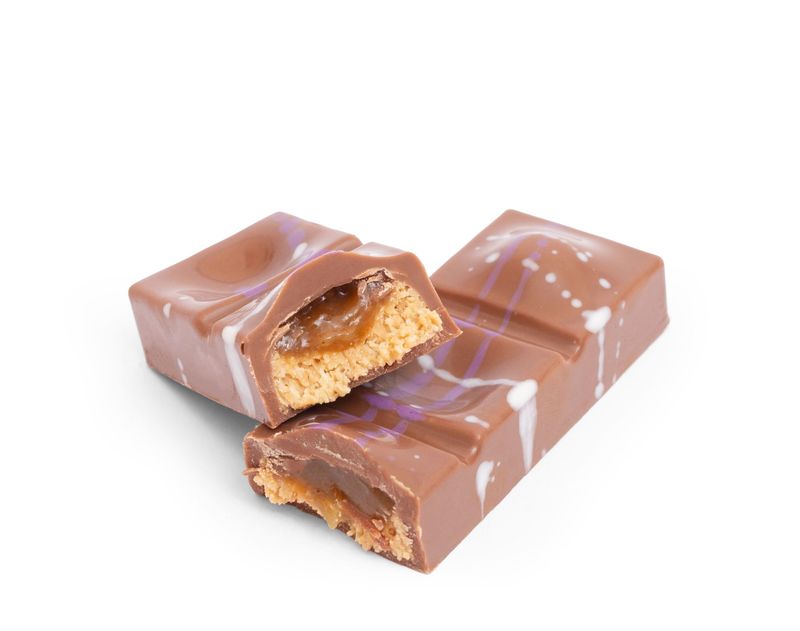 Корпус плитки приготовлен из высококачественного молочного шоколада. За счет своего мягкого сливочного вкуса он идеально дополняет начинку. Декор десерта представляет собой элегантную пару. Белый цвет подчеркнет глубину и насыщенность фиолетового. За счет того, что декор наносится кондитерами вручную, каждая плитка по-своему уникальна.