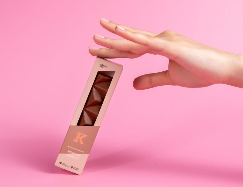Плитка «Нежные облака» отлично помещается в карман. Ее легко разламывать на кусочки-треугольники, растягивая удовольствие от любимого лакомства.