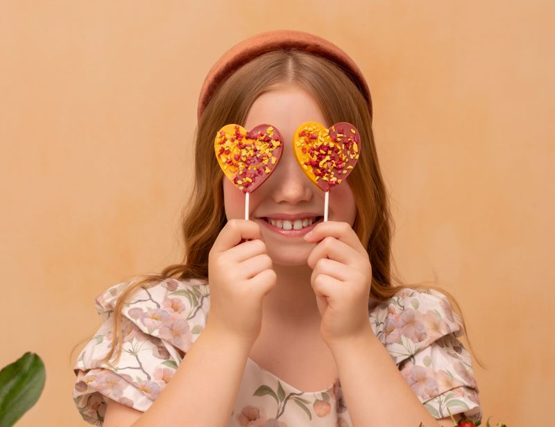 «В самое сердечко» — это сладкое признание в любви, заключённое в фигурке на палочке в форме сердца. Белый шоколад с натуральными ароматами манго и малины соединяет в себе экзотическую сочность, лёгкую кислинку и нежную сливочность.