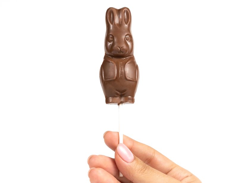 Сладость из молочного шоколада выполнена в виде забавной фигурки кролика. Улучшает настроение и внешним видом, и вкусом.