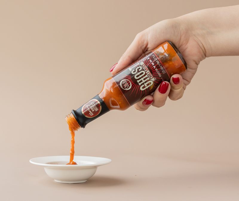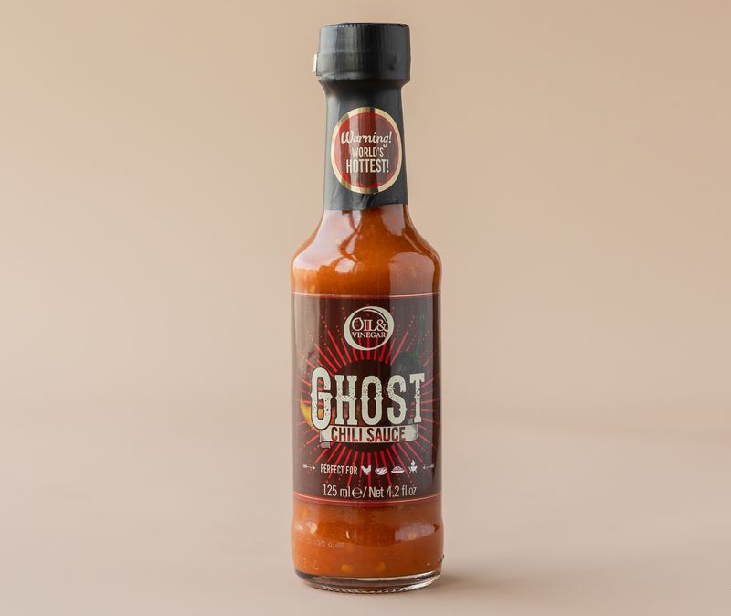 Соус сделан из стручка перца-призрака и предназначен только для настоящих ценителей острых блюд. Призрачный перец является одним из самых жгучих перцев в мире с индексом жгучести по шкале Сковилла - 1 040 000 SHU.