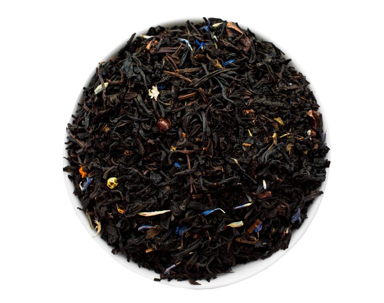 Ароматный и насыщенный купаж черного чая с ягодами, какао, цветами, пряностями и белым шоколадом.