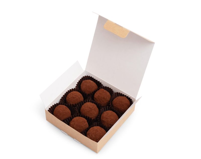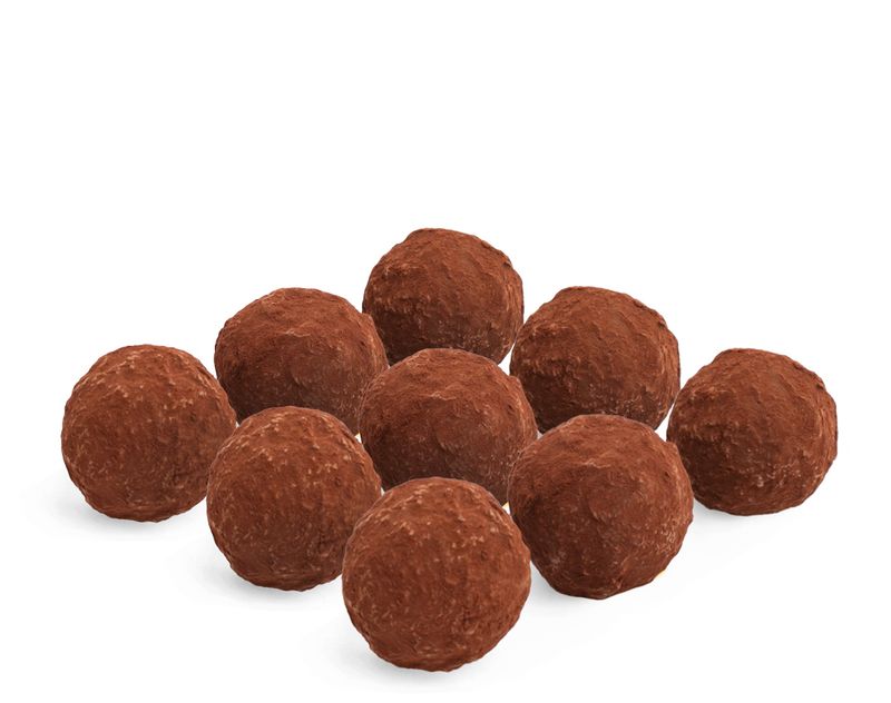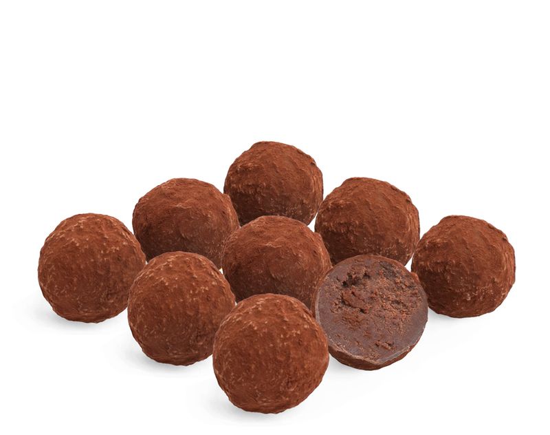 Классический десерт из темного шоколада с ароматным коньяком. Благородный вкус настоящего трюфеля.