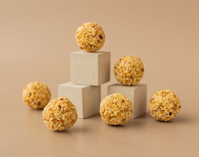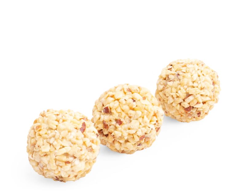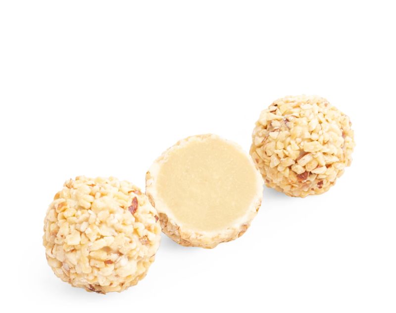 Трюфель с французским шармом. Элегантная обсыпка из дробленого фундука скрывает начинку из сливок, белого шоколада и фисташковой пасты.
