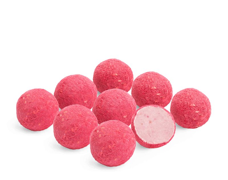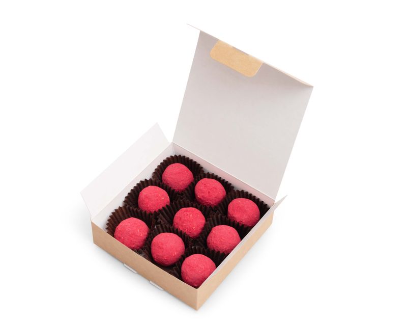 Трюфель в обсыпке из сублимированной малины полон задора и сюрпризов. Слегка кислый снаружи и сливочно-ягодный внутри.