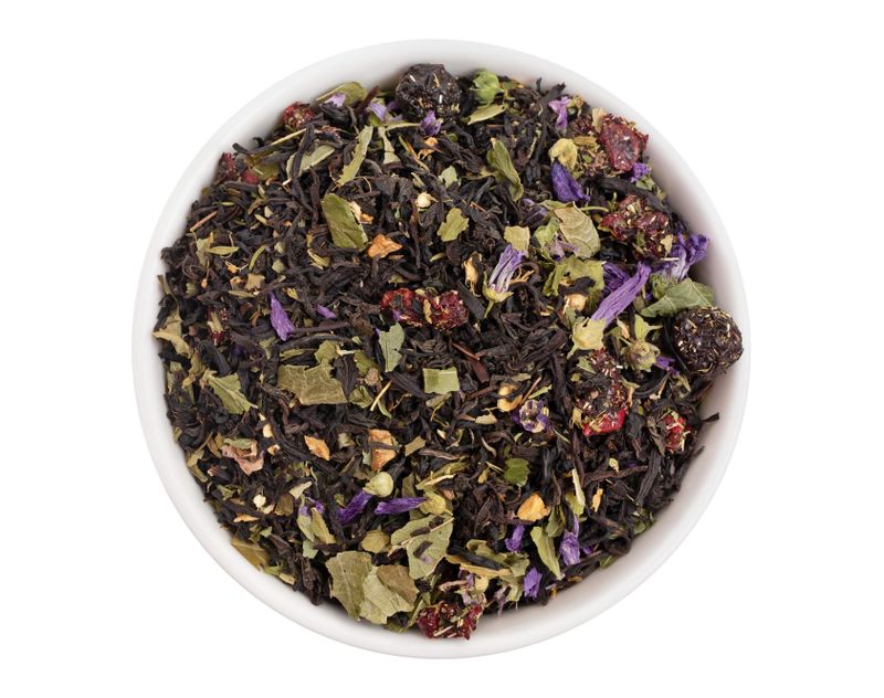 Состав: чёрный чай, вишня сублимированная, вишня сушёная, чабрец, имбирь, листья чёрной смородины, мальва, ароматизатор.