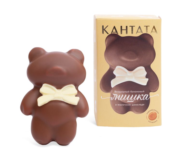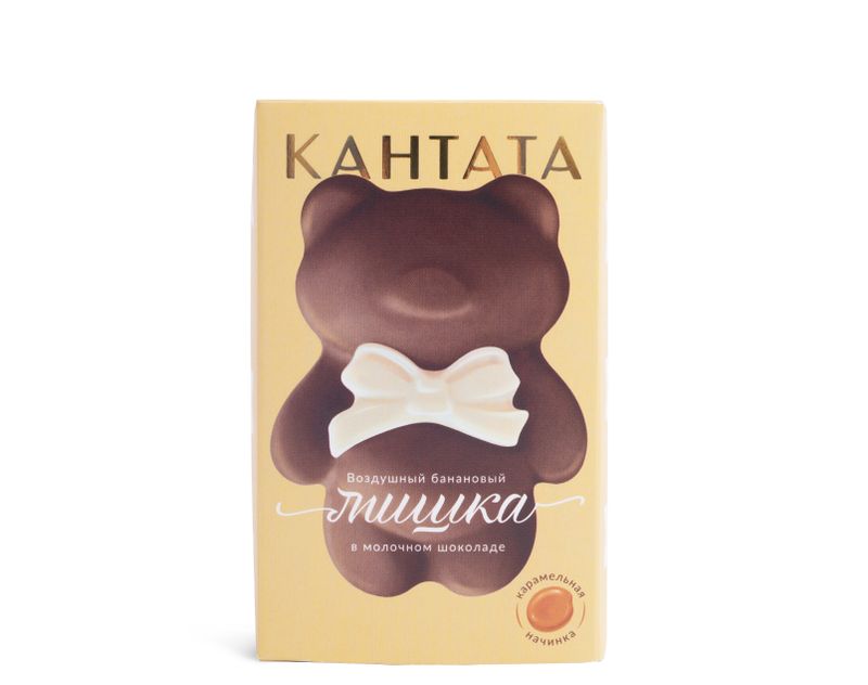 В основе — натуральное банановое пюре, которое придаёт десерту мягкий вкус спелого фрукта. В начинке — солёная карамель с добавлением гималайской розовой соли. Её готовят прямо на фабрике Кантаты, чтобы добиться гармоничного баланса сладости и лёгкой пикантности. Фигурка покрыта натуральным молочным шоколадом, который завершает вкусовую композицию мягкими сливочными нотками.