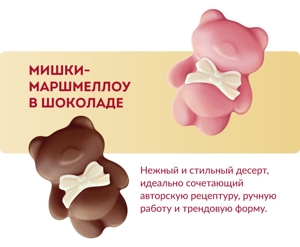 Погрузитесь в сладкие мечтания с каждым кусочком этого нежного десерта. Мишка из маршмеллоу очаровывает с первого взгляда: воздушная текстура, модная форма и ручной белый бантик из белого шоколада делают его по-настоящему уникальным.