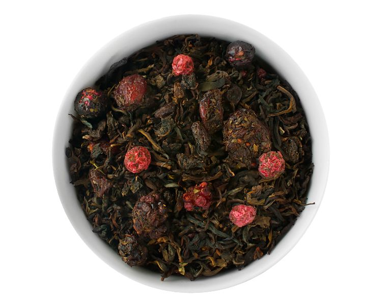Купаж чёрного и зелёного чая с клюквой, ежевикой, клубникой, чёрной и красной смородиной. Вкус чая такой ягодный и тёплый, словно в напиток добавили варенья.