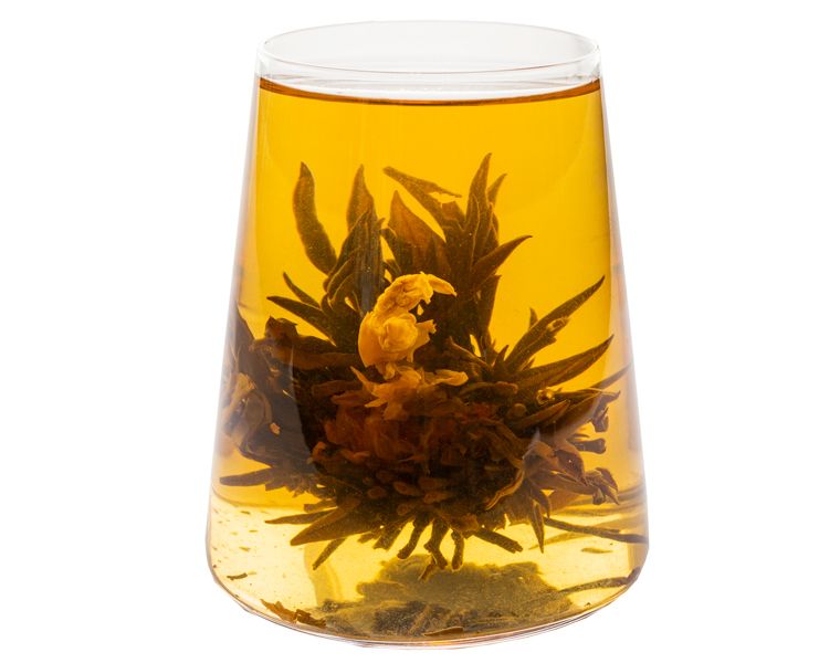 Связанный зелёный чай, эффектно раскрывающийся бутоном тибетской хризантемы и тонкой нитью из цветов жасмина. Завладеет вашим вниманием и поможет отключиться от всех забот.